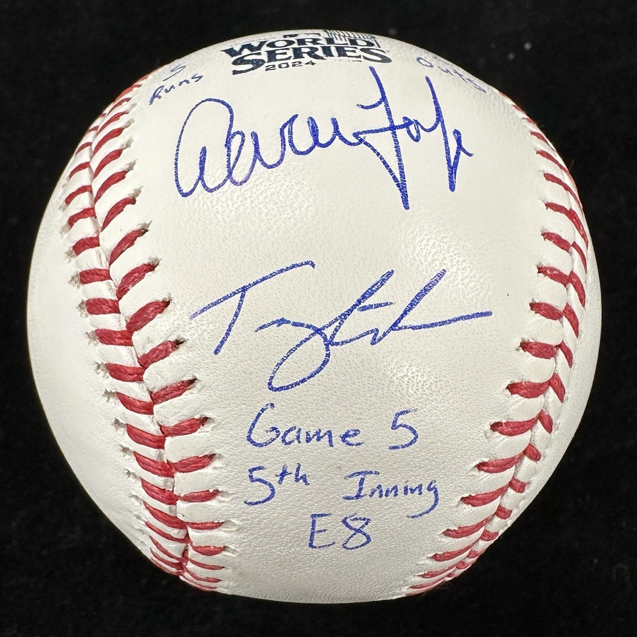 Aaron Judge Tommy Edman 2024 World Series Game 5 E8 Signed Baseball MLB Holo