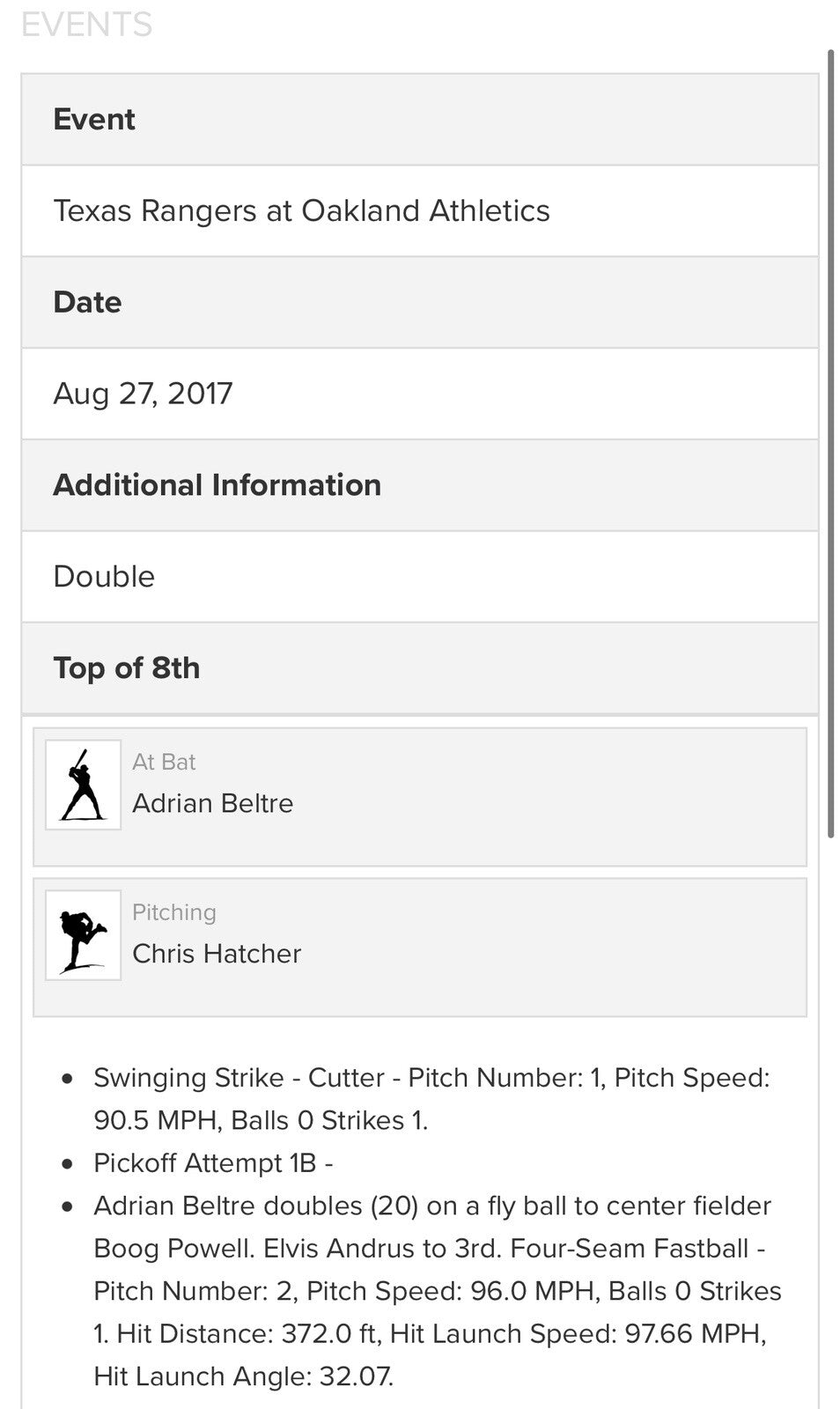 Adrian Beltre Game Used Career Hit 3,031 Baseball Double MLB Holo 8/27/17.