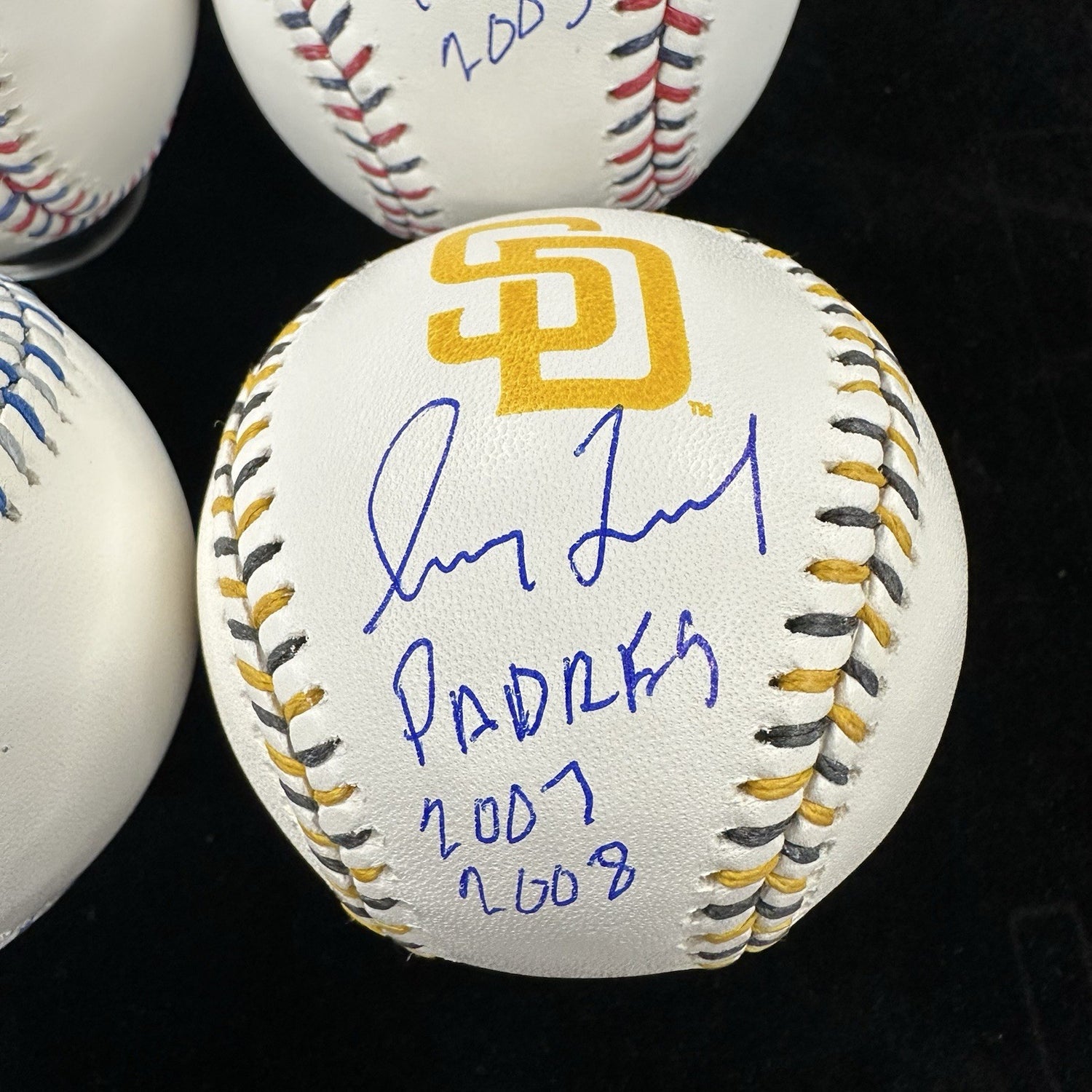 Greg Maddux Cubs Padres Braves Dodgers Signed Team Stitch Logo Baseball Set BAS. Shipped with USPS Ground Advantage.
