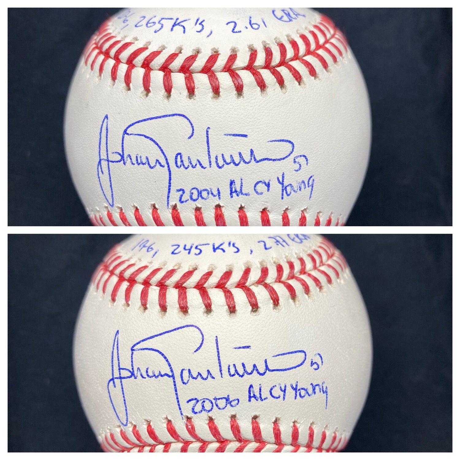 Johan Santana 2004, 2006 AL Cy Young Triple Crown Stat Baseball Set Beckett Wit