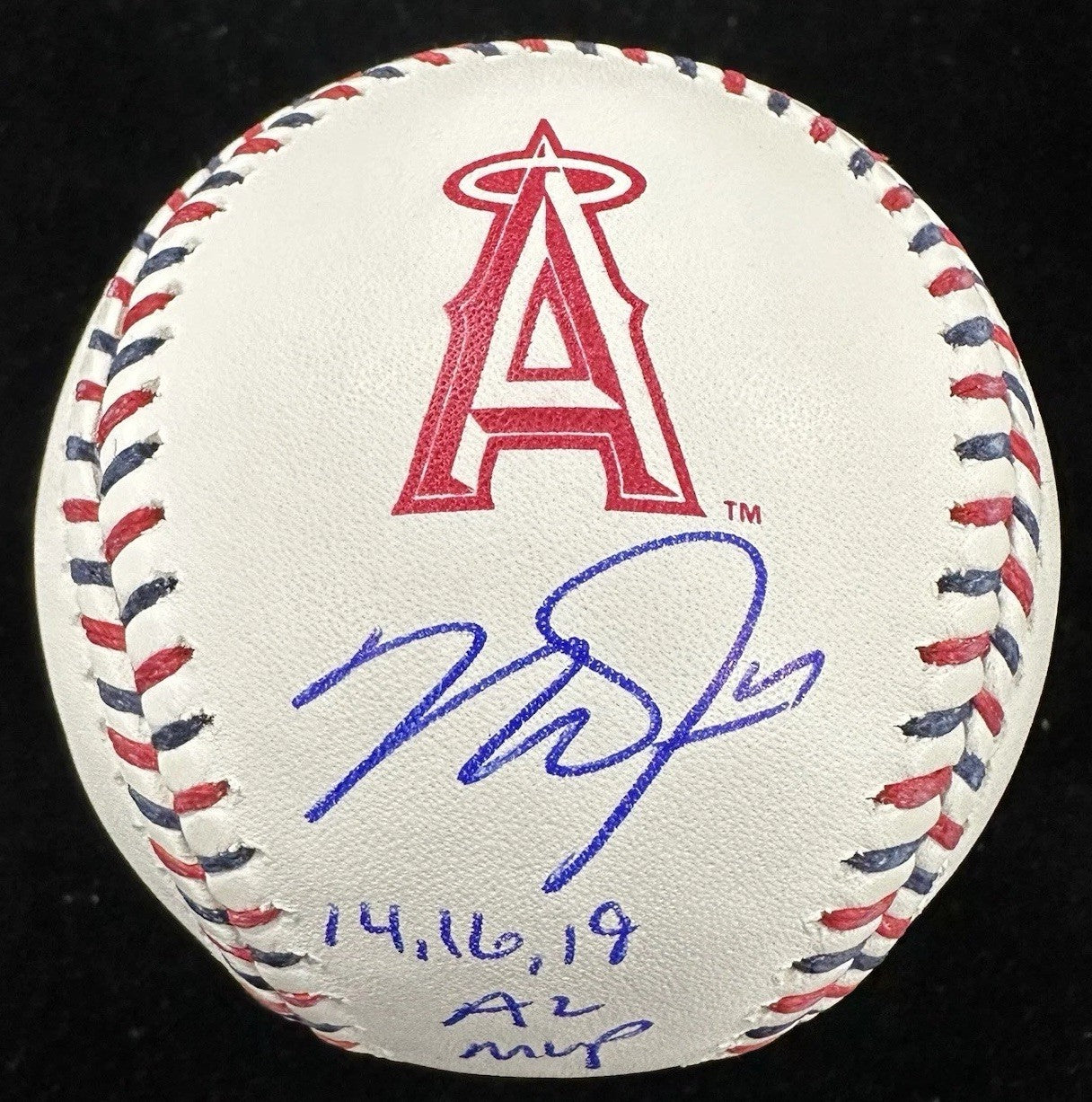 Mike Trout 14, 16, 19 AL MVP Signed Angels Team-Stitched Logo Baseball MLB Holo is backordered and will ship as soon as it is back in stock.