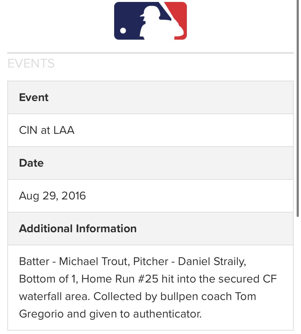 Mike Trout Game Used Career Home Run #164 HR Hit Baseball 2016 MVP MLB Holo.