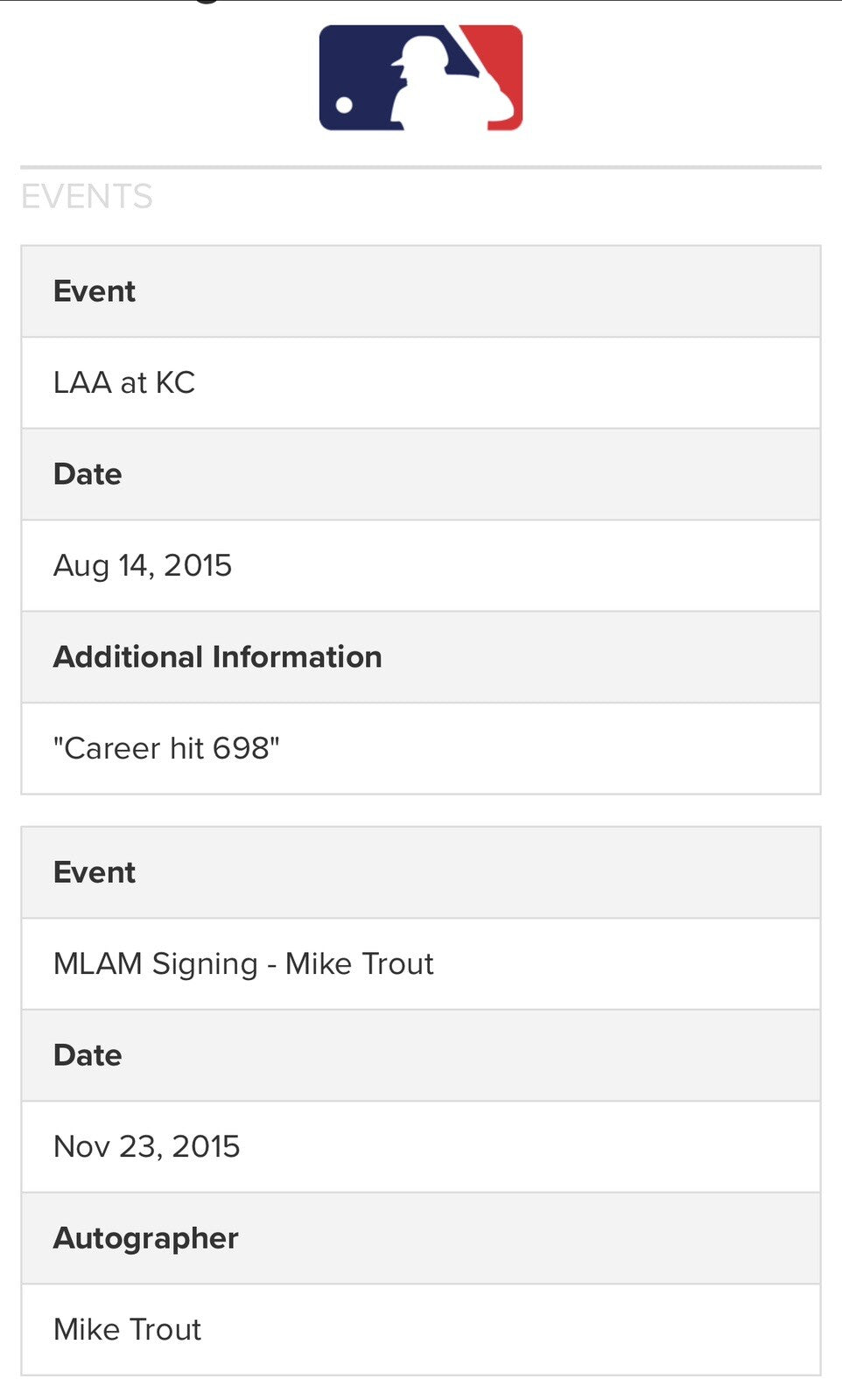 Mike Trout Game Used Signed Career Hit #698 Baseball MLB Holo Angels.