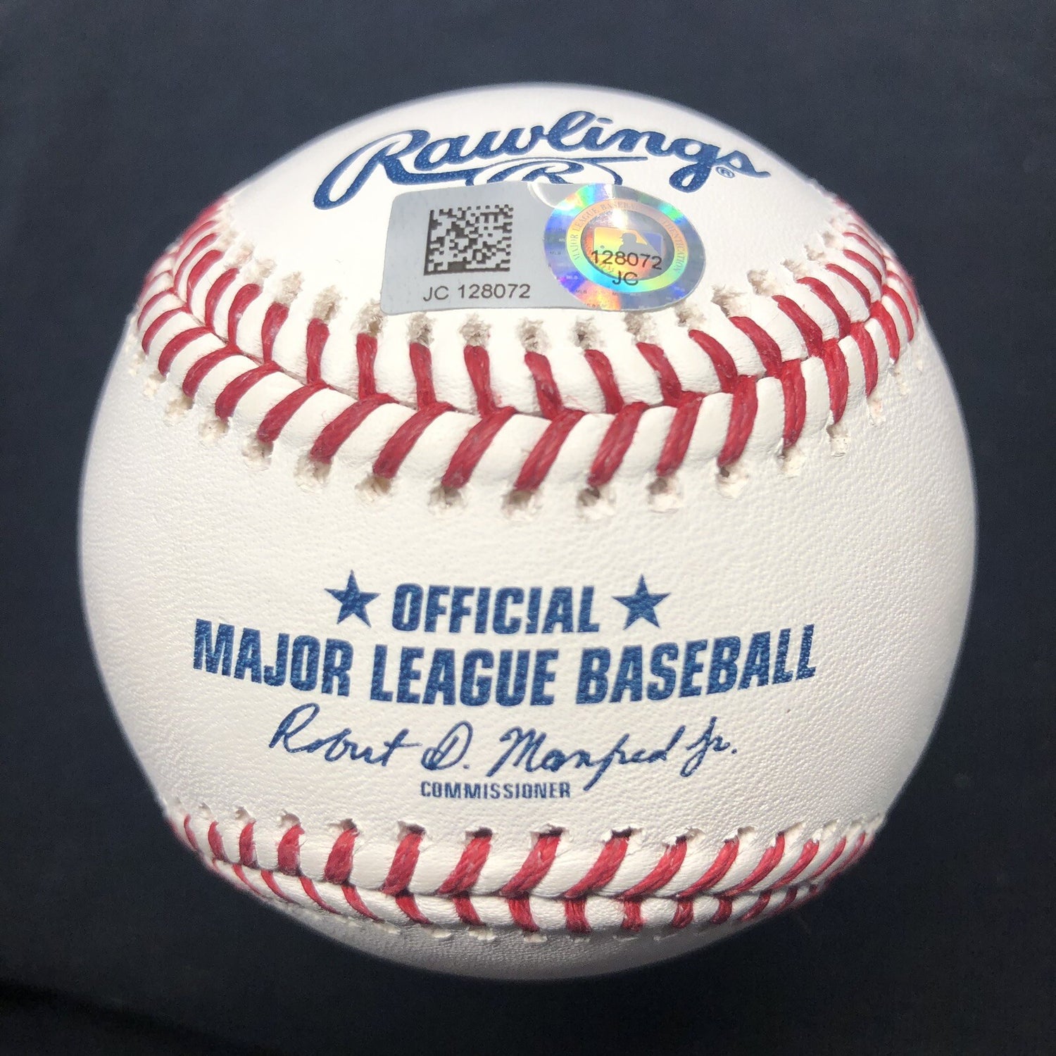 Incredible 1/1 Mike Trout signed baseball with Light That Baby Up inscribed and the Angels logo sketched out. A true 1/1 piece I’m sure will never be replicated. Ball has been authenticated by MLB and comes with the MLB hologram, which can be verified online.