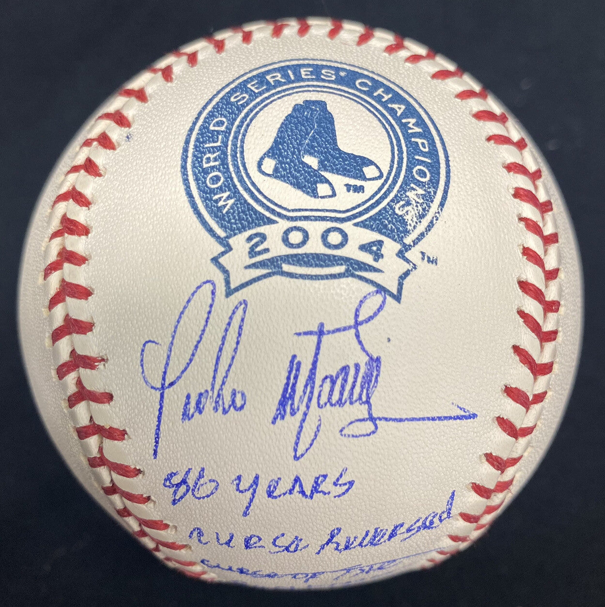 Pedro Martinez Curse Reversed Signed 2004 World Series Champs Baseball JSA.