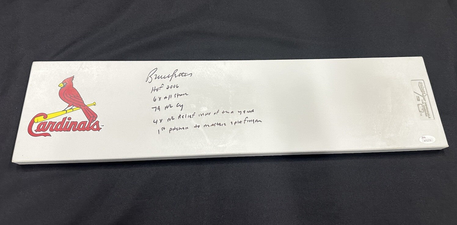 Bruce Sutter Stats Signed Authentic Schutt Cardinals Pitching Rubber JSA. Shipped with USPS Priority Mail.