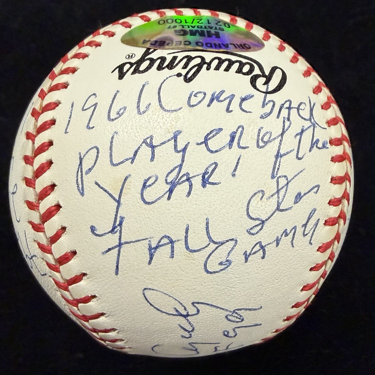 Orlando Cepeda HOF 99 Signed RJ Stat Baseball HMG Holo