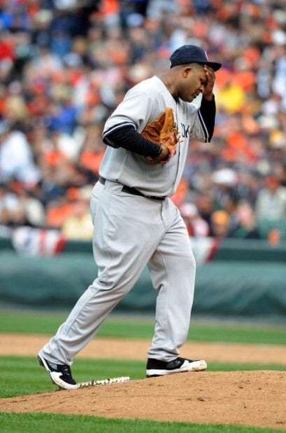 CC Sabathia Game Used Opening Day 2009 Rawlings 1st Yankee Glove Photo Matched.