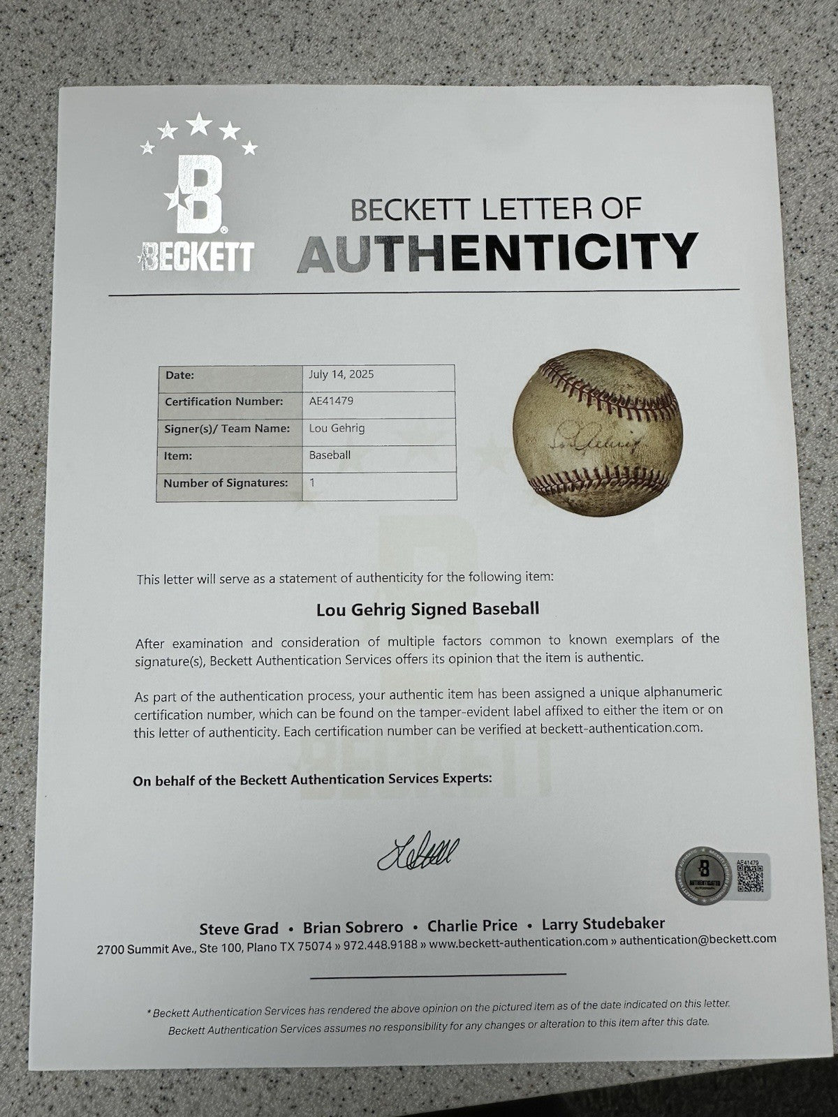 1934-39 Lou Gehrig Single Signed Baseball – Rare Sweet Spot Positioning!