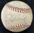 Here we encounter a specimen which ups the ante even further, supplying rare sweet spot positioning atypical of a man whose humility usually drew him to the side panel even on an otherwise blank ball. His black fountain pen ink survives with a conservative 6/10 boldness, unmistakable and stylishly scripted. The red-stitching of the OAL (Harridge) ball that serves as the ideal medium assures post-1933 production, as Gehrig was stepping out of the shadow of the Babe where he had labored for a decade. Soiling suggests game use. A marvelous rarity far too often absent from even the finest private collections. Full LOA from James Spence Authentication. Full LOA from PSA/DNA. Full LOA from Beckett Authentication Services.